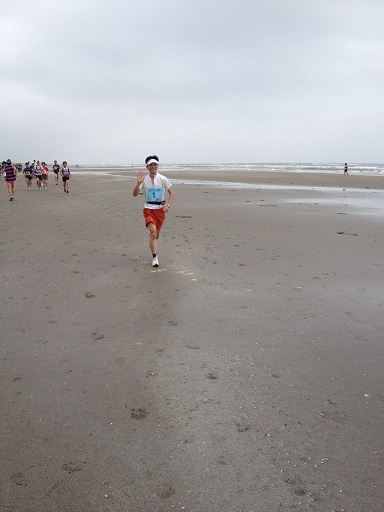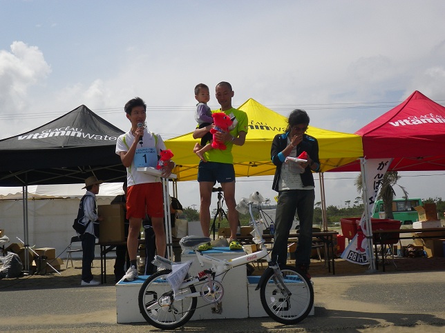 マニアックなレースだが今回は500人ほどエントリーがあったと聞いていたので、さすがに今回は勝つのは厳しいかと思っていたら現地で受付をしてみるとメインの40kmの部は80人ほどのエントリーしかなく(出走は50人!?)大部分は20kmと10kmの部の人だった。普通の大会はメイン部門が圧倒的多数だけど砂浜で40kmというと二の足を踏む人が多いようだ。