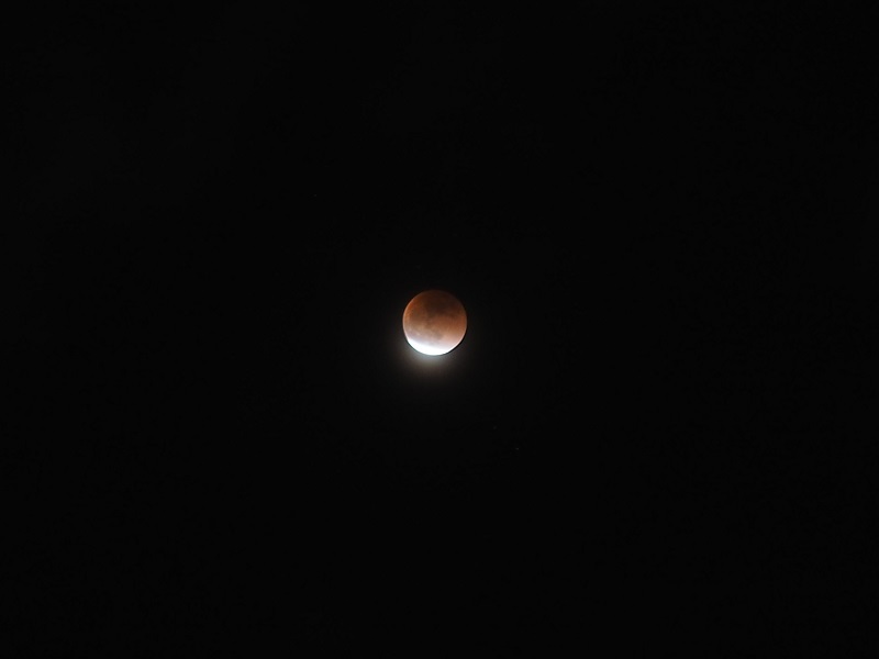 2枚目:22時48分:食の最大と皆既終了の間。明るさが変わっている