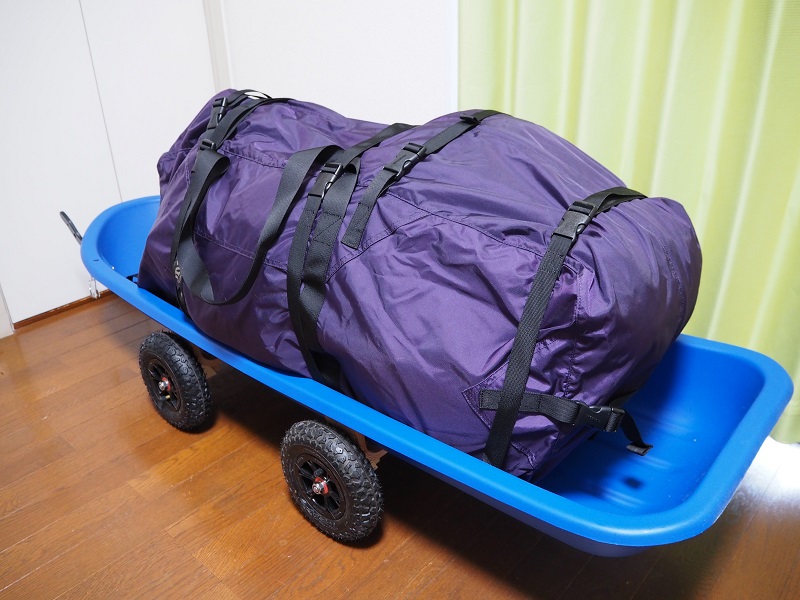 今週末の氷上キャンプに向けてユーコン装備をパッキングした。食料と水以外本番と同様の装備で荷物の重さは16.7kg。実際は身に着けるものもパッキングしてしまっているので少し重めになっていると思う。これに食料と水を入れたら20kgくらい。ソリ自体の重さは8.2kg。トータルで28~30kgくらいの感じ。持ち上げると(荷物だけでも)かなり重たいがソリのタイヤのおかげで指一本で動かせる。登坂は厳しいかもしれませんが・・・。