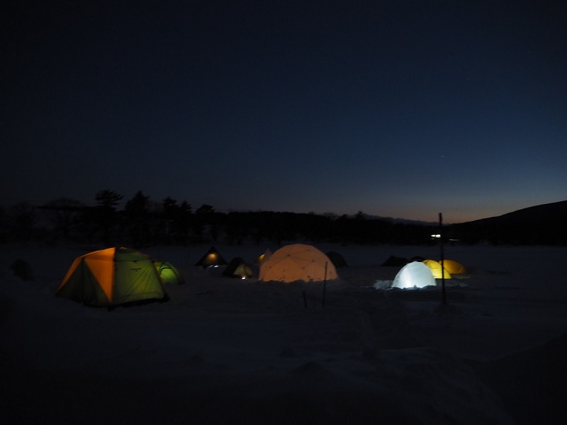 夜のキャンプは6633の強風を想定して、まずシェルターの中にもぐりこんで中でポールの組み立てとシェルターの立ち上げをおこなう。最初はマットなしで寝れるか、そのままシュラフに入る。シュラフの中にシュラフカバーを入れて自分の汗がなるべくシュラフに移らないようにする(凍ってしまうので)。去年のレースのとき準備時間を惜しんで、マイナス20度くらいで膨らませていないエアマットの上にシュラフを出して寝たら、しっかり4時間眠れてしまったので。シュラフ自体は十分に暖かいが地面に強く接している背中が冷たくて眠れない。1時間ほど粘ってからサーマレストZ-Lite SOLを敷いて寝た。今回は本番マットもこれで行くつもりだが去年までのエアマットも持っていったほうが安心。