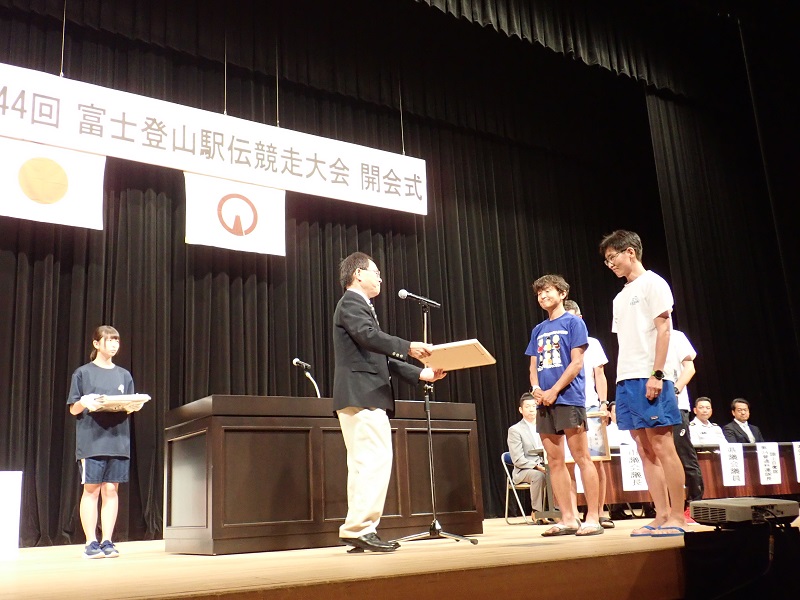 明日は富士登山駅伝のため開会式で前日入り。開会式では20回出場の記念表彰を受け、山頂区選手とサポーターを見送った。それからデニーズでミーティング。