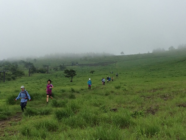 試走のときに天気が悪かったため、今度こそ晴れるようにと思ったが前半から雨。中盤はしばらく止んで助かったが車山あたりから本格的に悪天候になり。エイドにしたコロボックルヒュッテでは参加者の大部分が少し震えている状態に。おかげでレースなどで義務装備が提示されていてもそれを満たせばよいということでなくて自分で判断できるための大切さを話すことができた。こういうのって悪天候とか身を持って感じないとわからないから。自分はしっかりしたウェアだったのでまったく寒くなかった。そこでコースを変更して霧ヶ峰インターチェンジ付近のすぐにバスに退避できるところをぐるっと走り距離も短縮して終えた。