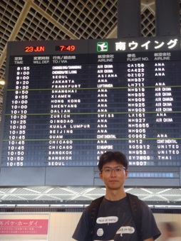 4時50分起床。1時間半くらい睡眠できたか?眠れていない割には緊張感があるためか眠くない。さっと準備して出発。5時33分北戸田から電車に乗り成田を目指す。電車の中携帯電話で昨日からtwitterにたくさんメッセージいただいていたものに返信する。成田に7時に到着。中国国際航空のチェックインカウンター前で長谷川さんと合流。チェックイン後に長谷川さんが「元」に両替。ちょうど両替窓口が開いたところだった。