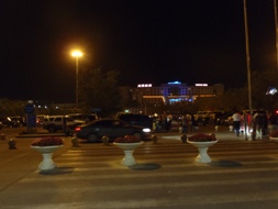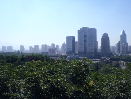 ウルムチはさすがに砂漠に囲まれているのでもわっとした暑さ。しかし緑豊かな公園があったり涼しげな印象をいくらか演出している。公園の隣にはプールもあった。紅山公園は観光場所のほとんどないウルムチの中で唯一に近いくらい観光地な場所。標高差100mほどの岩山の上からウルムチの市街地を一望することができる。ウルムチは周辺が砂漠地帯とは思えないほどの大都会。高層ビルもそびえたっている。岩山の山頂で写真撮ってしばらくのんびりする。いい景色だったので1枚くらいなら携帯で写真を送信しても大丈夫だろうと思い写真付でツイッター投稿する。