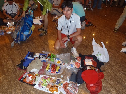 部屋で小野さんと最後のパッキング。出発前にもおこなったが装備リストと突き合わせてチェックしパッキングしていく。部屋の体重計が壊れていて重さを測れなかったのが残念。しかしそれなりに満足のいく軽さにはなったと思う。背負っても「重い!」という感じではなく「走る!」とやる気がみなぎってくる。