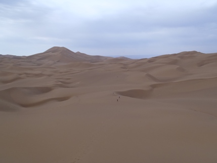 3時に起きて朝食と荷造り。今日は3時間ほどバスで移動した後すぐにスタートする。お湯はスタート直前にはなく、ここで3時から4時までしかもらえないためお湯を使う朝食の場合はスタートまでかなり時間があるがここで食べて行かなければいけない。4時にバスに乗り込んで出発。山岳地帯からマイナス標高のトルファンへ。気温も一気に上がるはずだが今日のコースには砂丘があるので楽しみ。