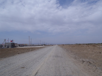 部屋に帰って最後のツイッター「これから戦場に行ってきます」と書き込み。荷物を持ってホテルをチェックアウト。砂漠に持っていくもの以外はホテルに預ける。日本人選手みんなで”使用前”写真を撮る。1週間後全員無事にここに戻ってこれますように!バスの中では爆睡。気がつくとだいぶ時間が経っていてバスはトイレ休憩に。すでにまわりは砂漠の風景なのに小奇麗な建物がたくさん立っていてお祭りみたいなことをしている。ステージ上で歌や踊りをしている。ここは新興住宅地?でも周りは砂漠だし、どんな場所でなんでお祭りなのかわかりません。レッドブルのノボリやテントがたくさんあるのでスポンサー付きで何かのイベント?きれいに整備されていましたが、トイレは中国式でした。穴掘って木の板が乗せてあって周りから丸見えなやつ。