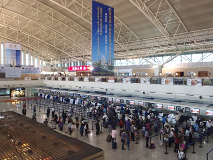 入国審査に並んでいるときに離れた列に小野さんらしき人物発見。順番的に自分より少し前くらいだったので入国審査を通過したところで声かけれるかと思ったが北京に慣れている小野さんは動きが早くさっさと行ってしまった。預けたスーツケースの受け取りはスムーズにおこなうことができ国内線乗り換えのターミナルへ。再度の荷物預け(チェックイン)のところで小野さんに追いついて合流。