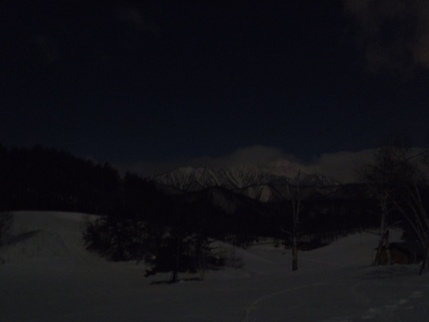 コンパクト・デジカメの夜景撮影モードです。月が明るくて露出時間がそんなに長くならなかったので手持ちでもきれいに映りました。首都圏復帰しても、ちょっと山歩きたいなーというノリで長野に行っちゃうかもしれませんね。横浜に住んでいたときに日帰りナイタースキー(鹿島槍)をしたことがあるし。