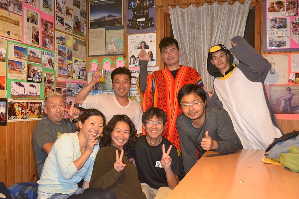 (写真)南極出発前日に上野山荘にて。後列左から2番目がトールさん。この写真に写っているうち南極ランナー4人と旅人2人は2/12の南極レース報告会で再会した。