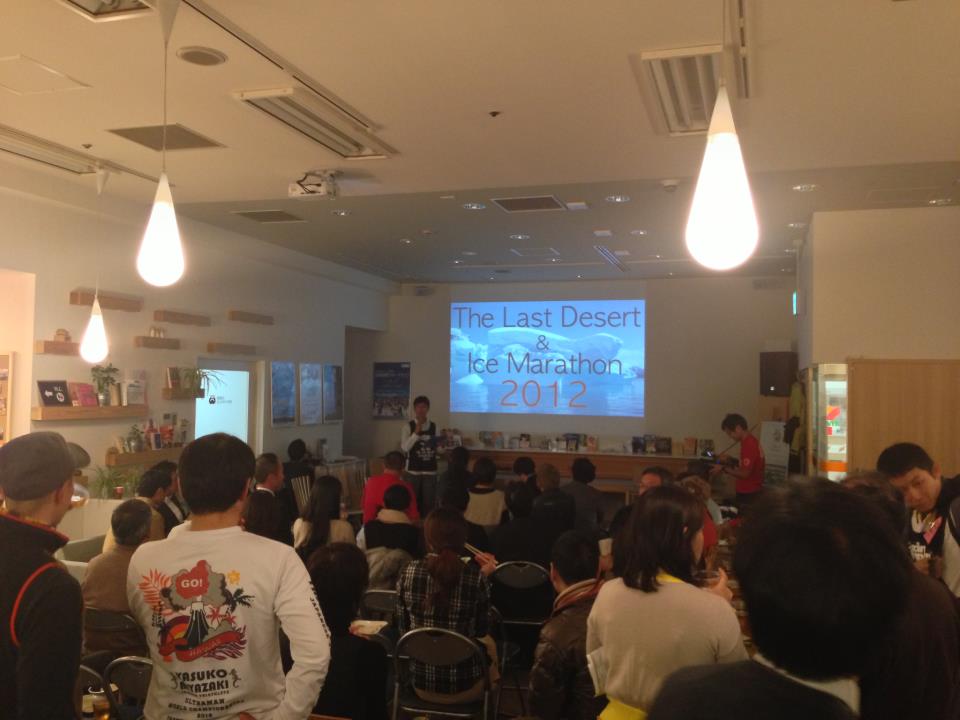 報告会の様子は映像のプロのお二人が撮影・編集を担当してくれました。素敵なDVDにまとめてくれると思いますので楽しみに待ちたいと思います。これで南極レースに関するイベントはいったん終了。砂漠からの一連の活動ほんとうに楽しかった。またいずれおもしろいネタを作ってイベントできたらいいと思っています。