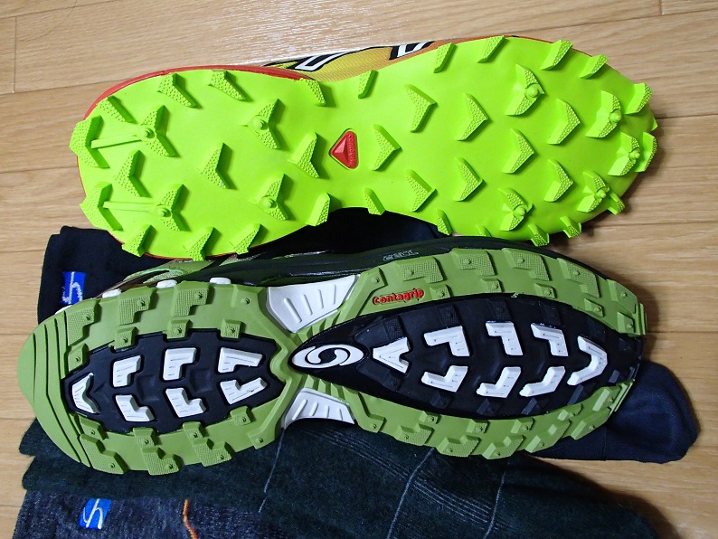 XA ProはSpeed Crossの対極のシューズ。ソールが固くがっしり系。岩だらけのコースや凍っていてチェーンスパイクを装着しなければいけないような状況で使う。
