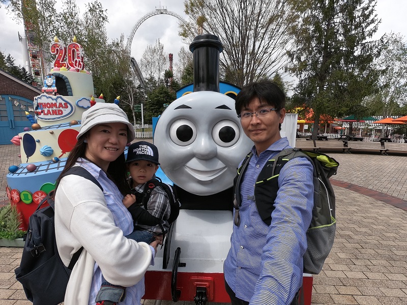 12時30分ごろ富士急ハイランドのホテルに車を止めて富士急ハイランド内に入るころには天気が良くなった。富士急ハイランドと言っても空っち3歳なので楽しめるものは小さな子供向けのものだけでトーマスランドだけで遊んだ。GW1日前なので人が少なくどのアトラクションに乗るのもほぼ待ち時間なし。空っちにGPSトラッキングを装備して迷子になっても大丈夫と思っていたが残念ながら役に立つことはなかった。