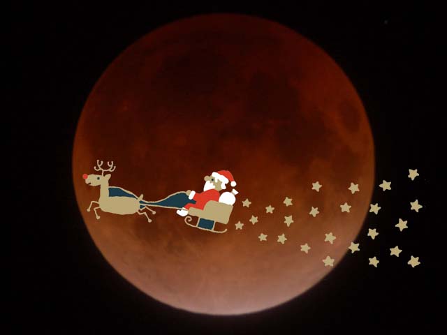 実際は12月10日の皆既月食の写真とサンタクロースのイラストの合成です。メリークリスマス!