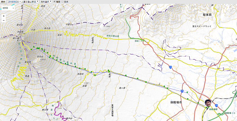 御殿場駅(標高455m)~砂走館(標高3090m)~御殿場市陸上競技場(標高516m)