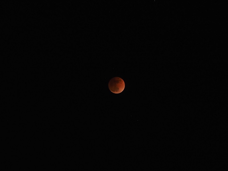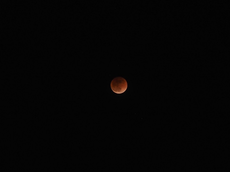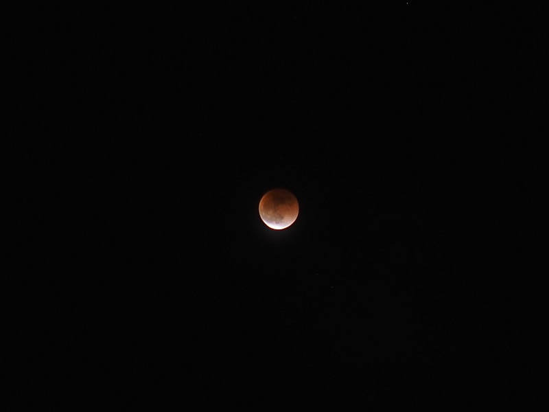 2枚目:22時48分:食の最大と皆既終了の間。明るさが変わっている