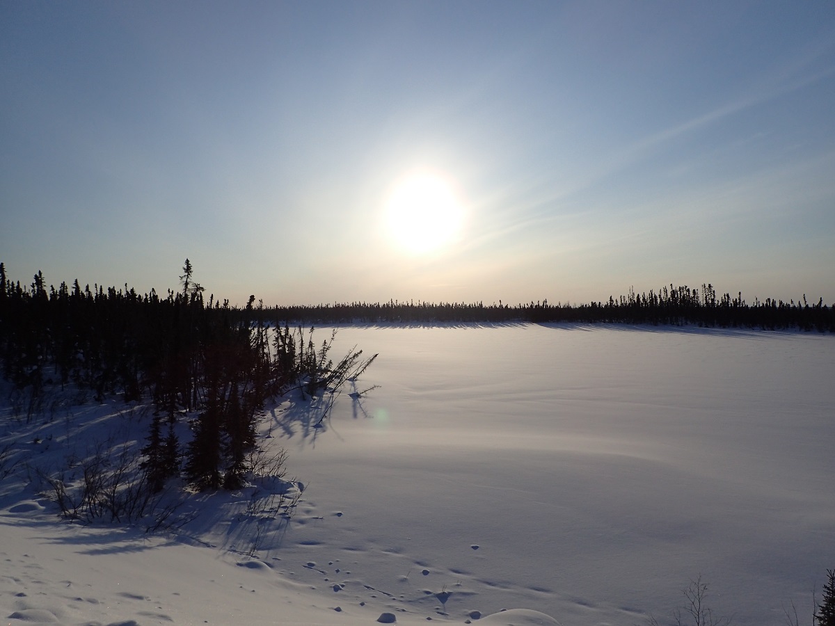 コテージから出発したもののコースはどちらに行けばいいのかわからない。するとどこからともなく現れた犬を連れたおじさんが「出て左、まっすぐ行って川に出たら右」と教えてくれた。たぶんスタッフ?レースの協力者か?それにしてもすでにコース上に残っている選手は10名以下になっていると思われ、おそらく選手よりもスタッフの人数のほうが多くなっている気がする。22時近いとはいえまだ薄明るい。ノースウエスト準州の時間+サマータイムになって時計が2時間進んでから妙に夜遅くまで明るくなった。その代り朝は7時、8時になってようやく明るくなってくる感じだけれど。