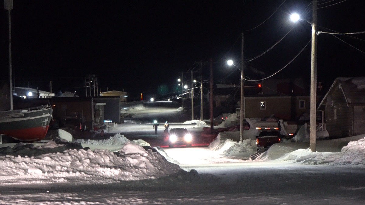 CPには松村さんがいた。おしゃべりで気分転換。また4時間目安で寝るが、2時間半で目が覚めてしまった。すっかりCPで2時間半+ビバーク30分~1時間の睡眠が定着している。松村さんは爆睡中だったので起こさずに出発。滞在5時間。寝て起きると足のむくみがなくなり筋肉的にも問題ない。普通に走れるくらい。もしかしたら行動時間が長くなってむくんで痛いのは水分不足かもしれないので、この区間はお湯を積極的に飲むようにしてみる。町の出口へ向かう途中、子供たちがスノーモービルで走り回っているのに遭遇。せいぜい10歳くらいの子供で大きなスノーモービルは大人が後ろに子供を乗せているのかと思ったら子供が2人乗りしているだけだった。こういう場所ならではの風景か。