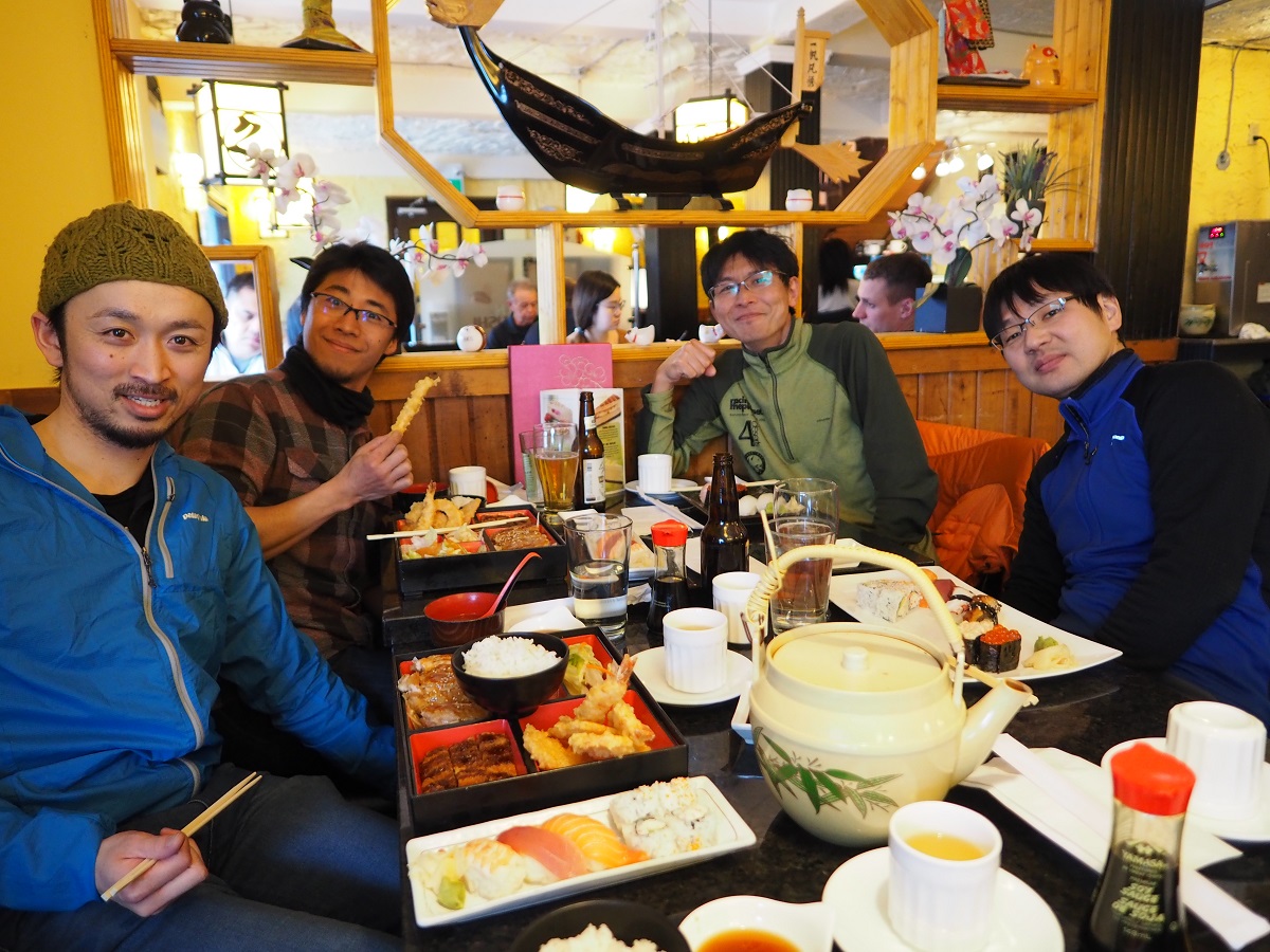 主催者マーティンが通りかかり私と松村さんが揃っているのを見て「キットチェック(必須装備チェック)できるか?」とのことで11時から松村さんの部屋で装備チェックを受けることになった。装備チェック各個人の部屋でおこなうので、普通なら私の場合は夕方チェックインしてからになるので、午後にブリーフィング、装備チェック、練習会?(初参加の人は必須)と休む間もなく連続かと思っていたので助かった。私の荷物は松村さんの部屋に揃っているため主催者の手間も省ける。当たり前の装備はユーコンアークティックウルトラの装備チェックを通っているため心配なかったが「ミラー」と言われ「思わず松村さんに義務装備リストにミラーなんてありましたっけ?」と聞く。やっぱりないとのこと。でも2人とも自己判断で凍傷チェックの鏡(主催者の意図もそれ)を持って来ていたので通過。