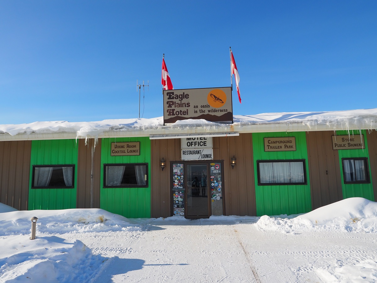 14時40分ごろイーグルプレインズに到着。イーグルプレインズは道の駅のような雰囲気。景色が素晴らしい。今日はここに宿泊し明日の朝9時にここからレーススタート。部屋でスタート時の状態にソリをセッティング。レース中に頻繁に使うものはザックへ、確実に使うものはソリの前方へ、たぶん(ほとんど)使わないものは後方へ分けて準備完了。ドロップバッグは明日の朝レーススタート前に預けることになった。