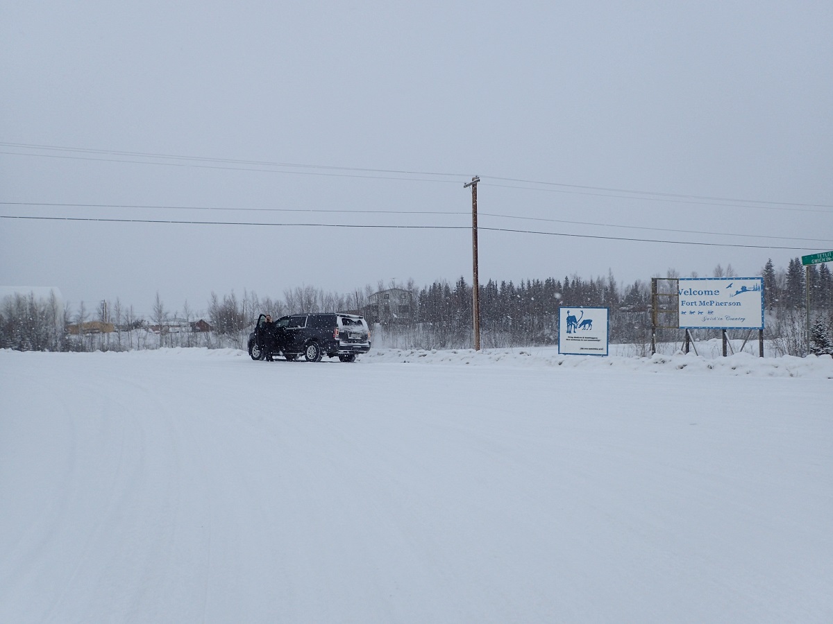 ようやく「Welcome Fort McPherson」という看板がありその前に大会スタッフの車がいた。デンプスターハイウェイから左の道の分岐を入るとフォートマクファーソン。「車についてこい」と言われ後ろをついていく。CPとして借りている学校は町の奥のほうにあってそこそこ時間がかかった。17時52分到着、予定よりも1時間27分遅れ。しかし自分の見積もりは時差・サマータイムを含めてなく、実際にはここまで時差・サマータイムで時計を2時間進めているのでほとんど予定通りのペースだ。ただ最終的なフィニッシュ関門に対する余裕が4時間程度しかないという一瞬も油断できない状態ではある。