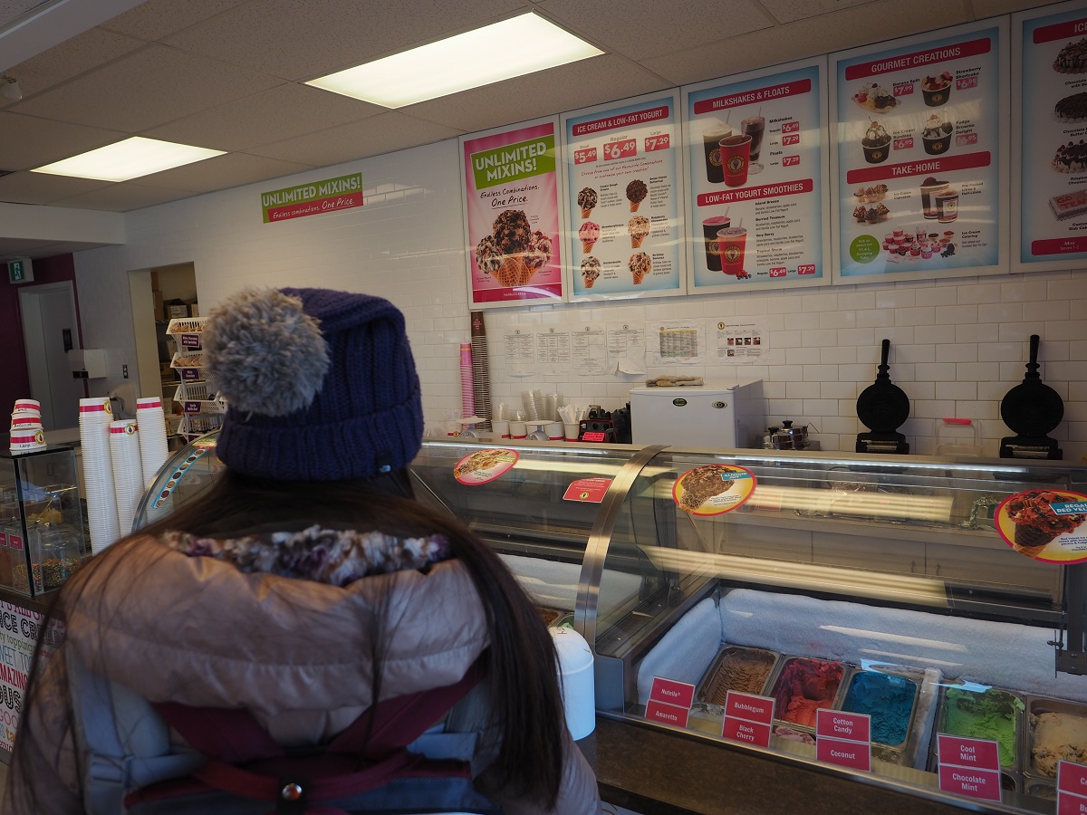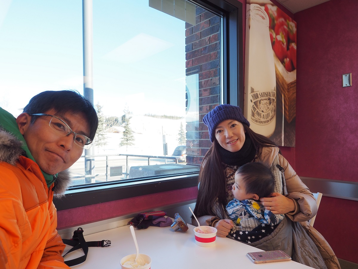 一度モーテルに戻ってかられなっち&空っちを連れてアイスクリーム屋へ行く。2年前に見つけて入ろうとしたらお休みだったお店。気温はマイナス20度ですが。スーパーで買い物をし(カレー粉は見つからなかった)土産屋・おもちゃ屋・雑貨屋を回る。モーテル出発が16時と遅かったのでお店は閉店準備中な感じ。日用品のお店以外はだいたい17時から18時に閉店する。