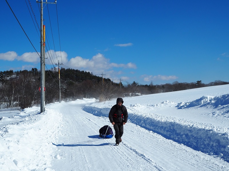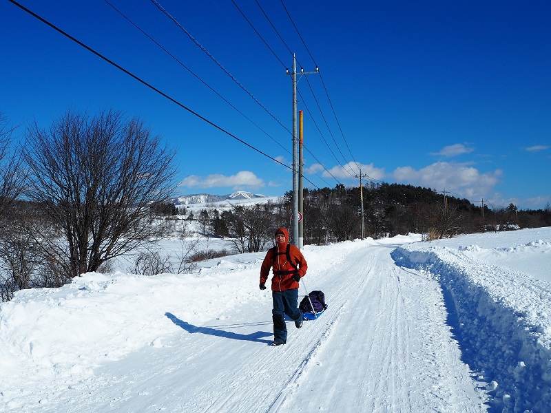 とりあえず1時間ほどソリを引き回してみたところ(アップダウンありで)、4.25kmを52分、時速4.9kmだった。元気な状態からのスタートなので最初だけ速くても仕方がないため2日目以降をイメージしてそれほどがんばらなかったけど十分に時速4kmを上回ったのは良かった(それでも元気だから速かったというのは絶対あるだろうけど)。やっぱりタイヤで圧雪状態のおかげだろうか。(本番も車が通行する道なので状況は似ていると思われる)本番は登りでは特にペースが落ちると思うので下りをしっかり走ったほうがいいと思った。