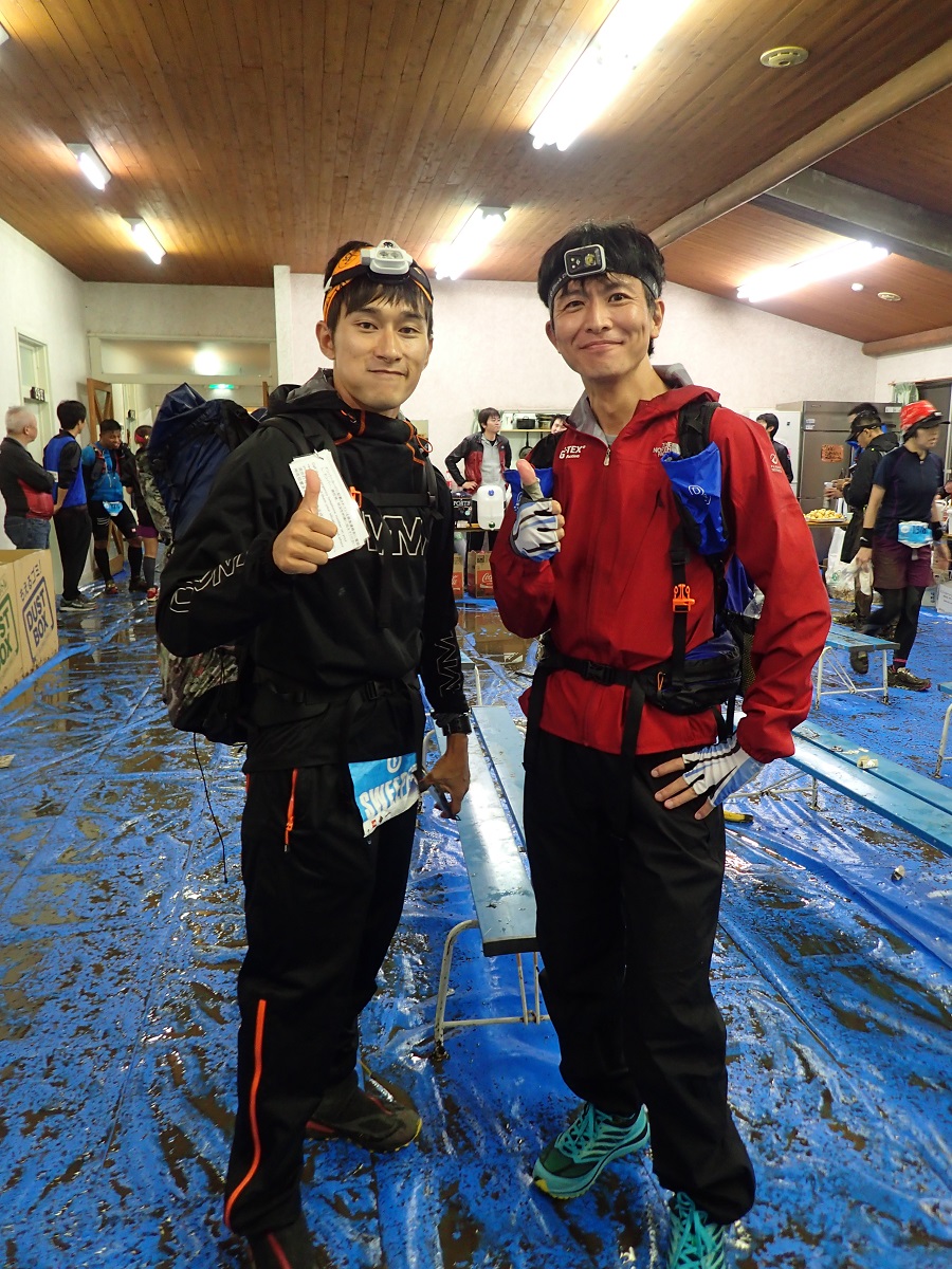 22時30分にもう一人のスイーパー中山氏と2人でA2本栖湖を出発。ロードを走り出し「160km走るつもりの人が集まっていて、レースが50km足らずに短縮されているんだから、A2からA3くらい普通に走ってすぐ終わるでしょ」と舐めていたが、出発してすぐに最後尾の選手を捕らえる。やっと歩いている感じで残念ながらA3まで3時間ほど徒歩の旅になりそうだった。幸い雨は小降りになり風もなく気温はそこそこあるので寒くはない。のんびりでも歩いていればフィニッシュはできるだろう。最後尾の選手はシンガポールからやってきた中国人。残りの距離はどのくらいか、A3からはどうやって帰るんだ、など頻繁に聞いてきて、中山氏と私の微妙すぎる英語力でなんとか対応。トレイルはどろどろの田んぼ状態で「こりゃレースする状態じゃないや」と思えるものだった。先頭のほうはましな状態で通過したと思うが1000人以上に踏み荒らされた泥の道は普通に歩くのも困難だった。予定通りA3道の駅朝霧に3時間かけて1時30分ごろ到着。