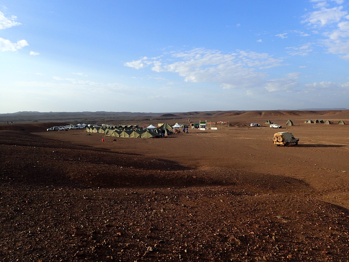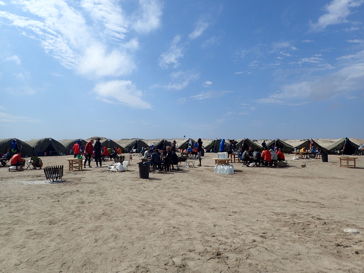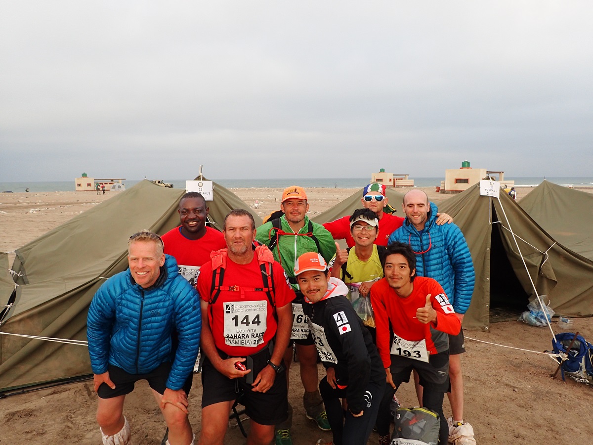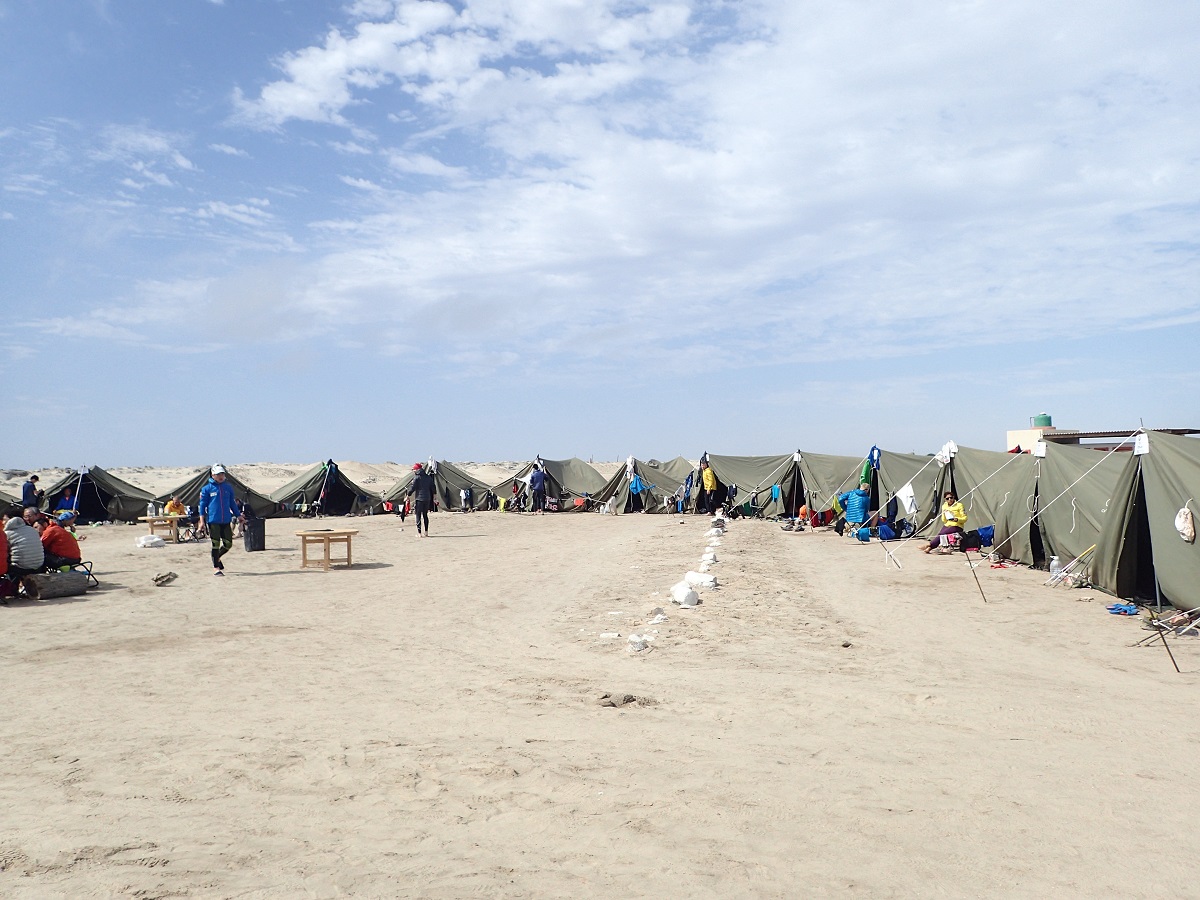 ロングステージの翌日は休養日。レースとしてはロングステージの制限時間が30時間ほど(今回は27時間だったかな?)なので、2日目の日中が制限時間になっている。しかし今回は気温があまり高くないのと、コースも少し楽だったか、朝起きた時点で大部分の選手は帰ってきている状態だった(むしろ前日深夜にほとんど帰ってきていた印象)。キャンプ地はTorra Bayというメジャーなキャンプ場っぽく水道の備え付けられたトイレ・更衣室?のようなものが立ち並んでいる場所。ただシーズンオフのようでレース関係者以外はいなさそう(寒いし!)。それでも砂漠で水道が出て水洗トイレが稼動しているのがすごい。