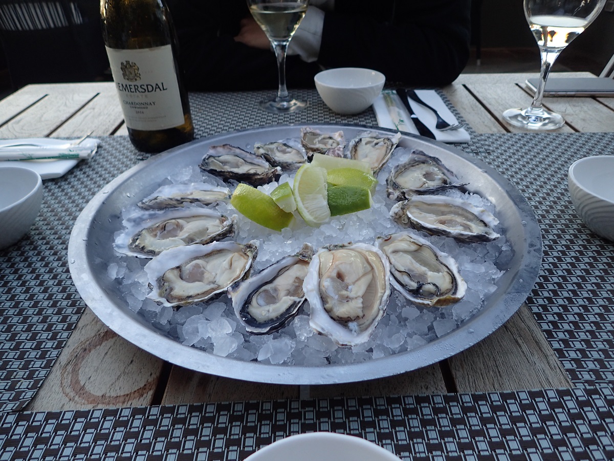 選手が全員フィニッシュしたあと撤収作業がおこなわれバスで4時間ほどかけてスワコプムントに戻る。途中で1日目に走ったコースと交錯したりしてちょっと懐かしかった。スワコプムントホテルに戻ったあと夜はパーティがあるのだが、その前においしいものを食べに行こう!と何人か(若岡さん、中田さん、キンさん)で集まってストランドホテルのそばの海沿いのカフェ・レストランに行く。ナミビアはカキが名産とのことなのでカキを注文。生カキに醤油をかけて食べるのがこんなにおいしいとは!キャンプ地での食事との格差がすごい。ちょっと寒かったけれど夕焼けに染まる海辺でカキを食べながら、それぞれのこれからやりたいこと、普段の仕事などの話をする時間が平和で素敵だった。