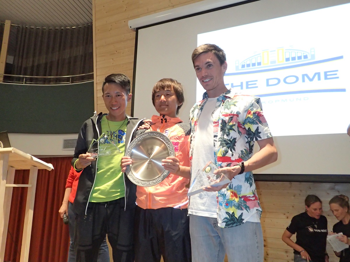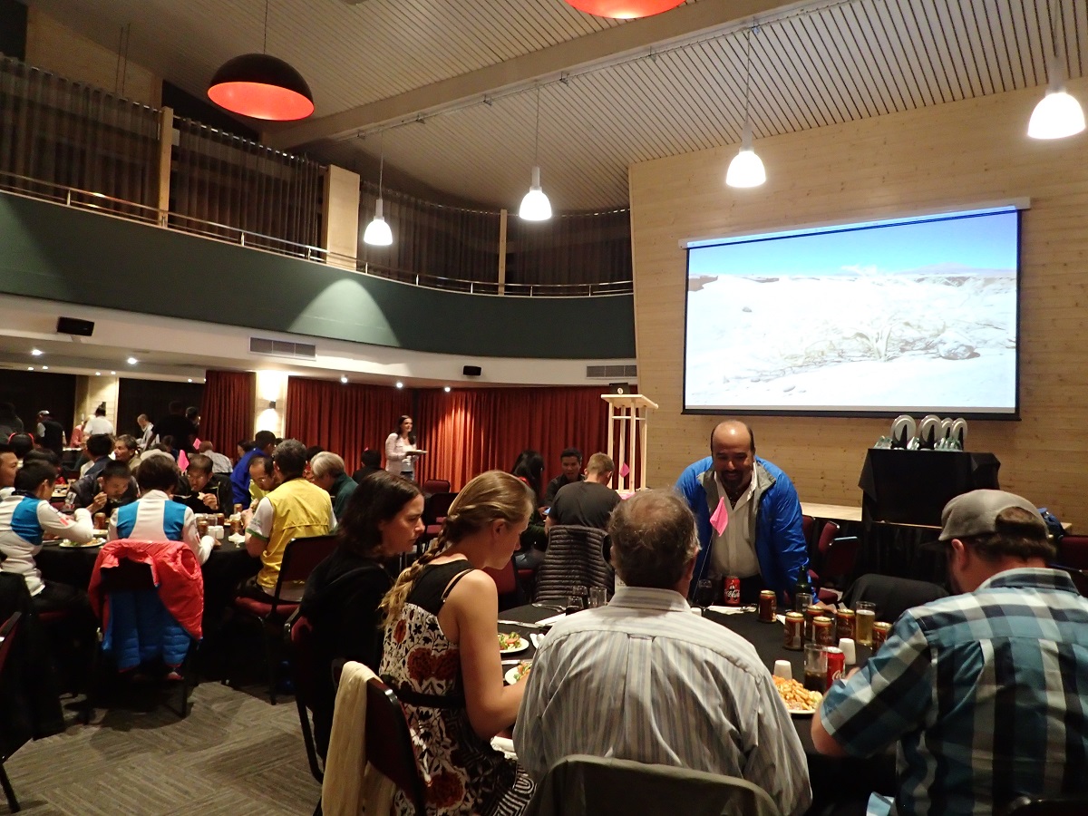 19時からパーティ。パーティ会場がホテルから遠く(大会で使っているどちらのホテルからも遠い)道に迷ったりしながらやっと到着。レース結果はわたるさんは完全優勝、若岡さんはトーマスに23秒届かず(おしい!)4位だけど年代別優勝(30歳代)、そして自分は5位で年代別優勝(40歳代)だった。ちなみにトーマスは20歳代だったので、3位までの総合入賞者を含めても自分は40歳代の1位ということで気持ちよく満足(自分をおじさんと認めた瞬間!)。女子部門では、まきちゃんが総合入賞には届かなかったが年代別優勝だった。まきちゃんが年代別優勝を指して(総合入賞の人を除いた1位なので)「残念賞の人たち」とか言う。