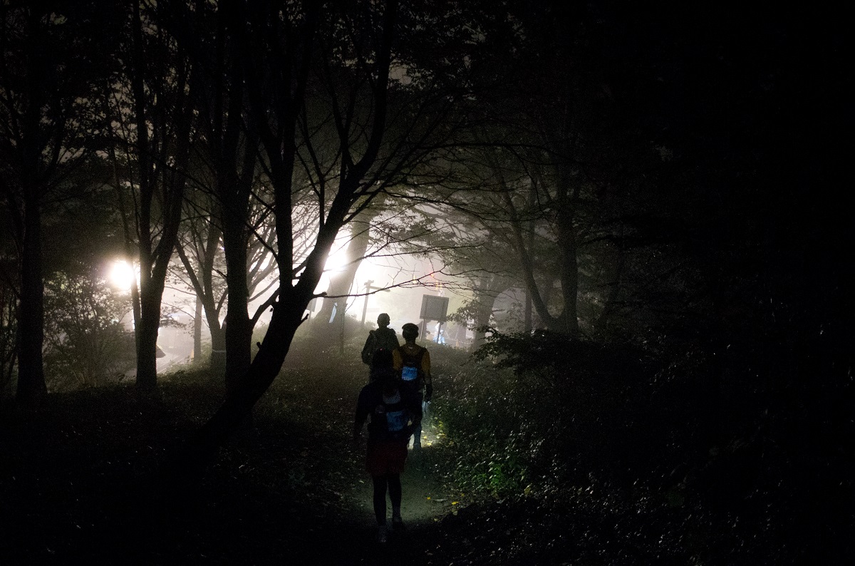 69kmのエイドはドロップバッグを預けてある場所。気持ち悪さが増して足が進まなくなってきたため休んでいく。ここで7時間30分で順位は61位。体の冷えを戻すこと(冷えて足が固まっちゃってる)と残りの30km確実に完走するために食事。ドロップバッグに魔法瓶にお湯とどんべえ天ぷらそばとコーンスープを送っておいた。毛布を借りて横になり、休み休み食べて完食。1時間ちょっとの休憩をしてから再スタート。歩いたり走ったりで少しずつ進むが歩きのほうが多かったかもしれない。登りでは歩きの人に抜かされていく歩きだったし。それでも残りのエイドでも置いてあった食べ物は食べたし、ウエストバッグに持っていた一口ようかんも全て食べた。いままでのウルトラマラソンの中ではありえないくらいの量食べれたのに、終盤は食べた分しか体が動いていない?という感覚あり。みんなはなんでエネルギーが足りているのか?今日は寒かったから特に消費が大きかったのか?