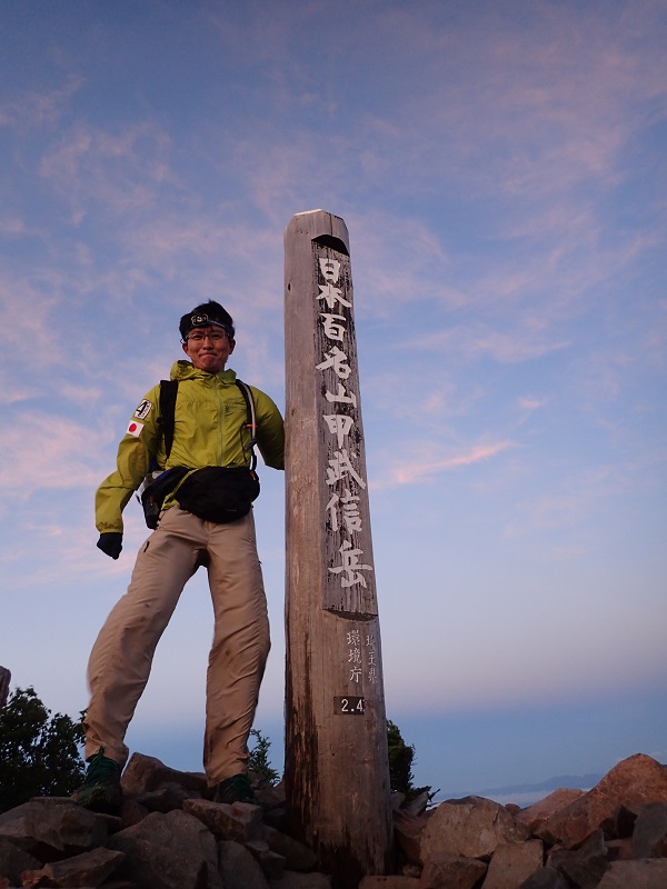 ここで休んで夜中に出発すると考えるチームが多いようだったが、休んでしまうと進む気力がなくなりそうなのと瑞牆山から降りた後で昼間になると暑さにやられそうなので、夜の間にゴールまたはゴール近くまで行きたいのですぐに出発することにする。大弛小屋に続き山小屋でうどんとコーラを補給して出発。瑞牆山を登りきった下山ルートの分岐で18時30分。登りきったところから本当の山頂はさらに5~10分あり、3年前に出場したときも日没直前のため本当の山頂を踏むことは断念したので、今回はぜひ山頂を踏みたかったがまたも日没直前。下山ルートが不明瞭なのでできれば暗くなる前に下山したい。