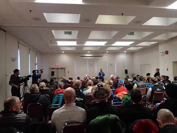 午前9時にブリーフィングのためCoast High Country INNに行く。ブリーフィングの後半の人は早口というか普通の早さでしゃべるので英語がまったく聞き取れなかった。10時30分にブリーフィングが終わり、急いでユーコンクエスト(犬ぞりレース)のスタートを見に行く。こちらもホワイトホースからアラスカのフェアバンクスまで約1000マイルを進むちょっとおかしなレースだ。まさに明日は我が身。