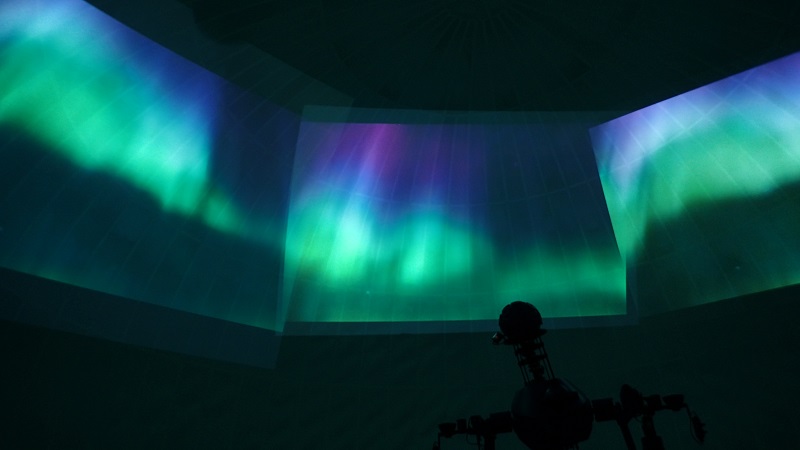 しかしテーマはそのままに松矢さんがプロジェクターでオーロラを出そうと素晴らしい映像を作ってくれたので、9月の実験のときには2台だったプロジェクターに、新たに私がプロジェクターを買って合計3台になりより広い範囲をカバーできるようにした。ただし松矢さんが真っ暗な中で3台のパソコンとプロジェクターをお話の進行に合わせて操作するという大変なことになったが。