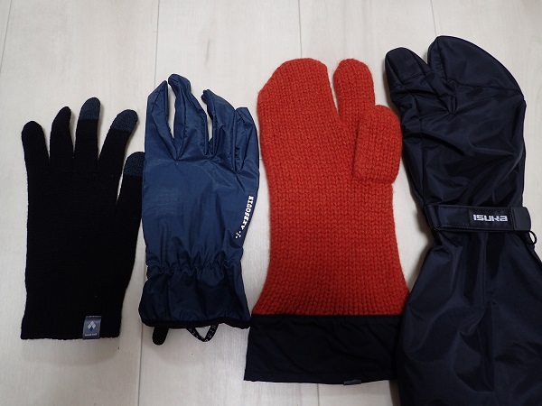 4枚重ねて着けることでまったく問題なし。細かい作業をするときは外側2枚を取るが、取った瞬間から時間との闘いが始まる。手が冷え切るまでに作業を終えなければいけない。一度に作業できるのは1分程度か?手が冷え切ったら全てのグローブを着けて手を温めなければいけないが、問題なく温まることができた。ただ足の温めなおしに使ったテントシューズの温まりっぷりがとても良かったのでグローブもダウンミトンがあると安心かなと思った。時間のかかる作業をするときは時間を細切れに作業と温めを繰り返しておこなうことになるだろう。