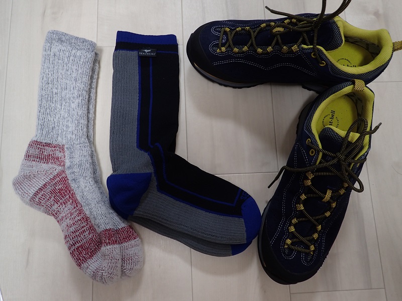 今日ぶらりと立ち寄ったモンベルでダメ元で店員さんに相談に乗ってもらい軽いシューズ(もうローカットでよいと割り切り)をソックス重ね履きで履いてみたが、やはり足の甲がきつくなってしまう。そこで店員さんが少し重くなるがとシューズの紐がつま先近くまであるものを出してくれた。これだとソックス重ね履きで足が膨らんでもつま先近くまで紐の締め方で調節することができいい感じになった。