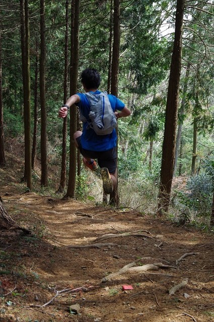 30人ほどが一斉スタートで指定されたコースを走るのだが、自分は今回はもう一つの目的があり先週の青梅に続いてトレランの映像撮影の練習。カメラは一眼レフのままだが今回はカメラを取り付けるグリップを用意した。これがあれば安定した映像を撮りやすくなるらしい。 スタートしてまずは先頭集団へついていく。飛び出したのは去年UTMF10位の武藤さんと矢島さん。走りやすい緩やかな登りの林道で、まだしっかり登り始めていないけどペースが速くてついて行くだけで精一杯。傾斜がきつくなってきたところであっさりちぎられた。