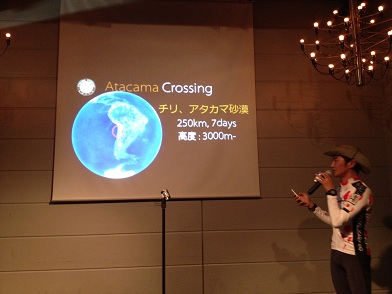 直接の友達がほとんどの会だったので、受付や会場のレイアウト変更などみんなに手伝ってもらいました。報告会をおこなうときはなるべく自分以外の出場者にも一緒に報告してもらっています。いろいろな人がそれぞれの目的で参加し、全力でチャレンジしているというのを伝えたいと考えているためです。今回はメインの報告者は私と飯田美絵さん(The Last Desert)、そして別の南極レースに出場した小野さん(Ice Marathon)という南極三昧。そのほかに「南極のあとに何を目指すのか」というテーマで1人1人の想いを語りました。みんなで報告をすると話に深みが出ていい感じになります。自分1人ではこういう雰囲気は作れないよな。