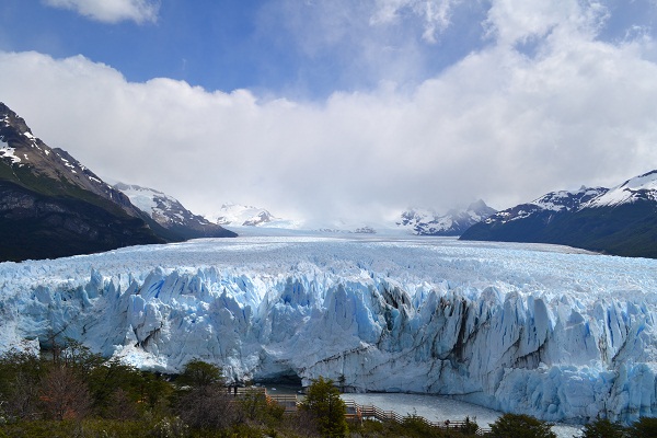 バスは小さな展望台に寄り道。5分だけの立ち寄りですぐに出発するとのこと。ペリトモレノ氷河も全体像が見えるようになっていて周辺の雪をかぶった山々も美しい。下のほうを見下ろすと船が停泊している。おそらくあの船に乗って氷河に行くはずだ。再びバスが出発するとやはり展望台から見えた船着き場に下りていくようだ。到着するとバスにここから先のガイドをしてくれる人が乗ってきてスペイン語と英語でこの先の説明をしてくれる。とりあえず「follow me」だけはわかったので(笑)付いていく。小さな観光船に乗り込みペリトモレノ氷河へ出発。船着き場からは氷河は見えなかったが出発するとすぐに見えてくる。船のデッキは氷河を写真に撮ろうとする人でいっぱい。人と人の隙間から写真を撮るような状態だった。