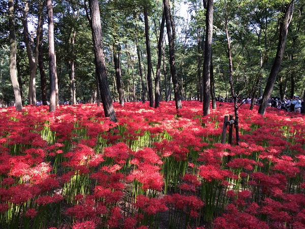 この最終回はコース後半の巾着田でヒガンバナを見たいと思って9月下旬開催にしましたが、これがぴったりはまって満開でした。真夏は物見山周辺も暑すぎて人はほとんどいませんでしたが、今回は気候もいいしヒガンバナで観光客も集まっているからか北向地蔵あたりからはかなり多くのハイキングの人がいて速歩き区間が多くなりました。