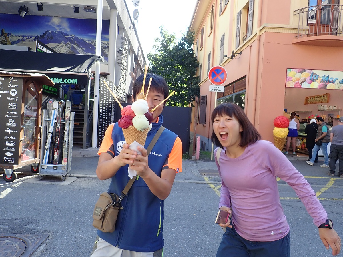 ※アイス10玉・・・シャモニーのアイス屋さんで巨大コーンに12ユーロでアイスを10玉乗せることができる。
