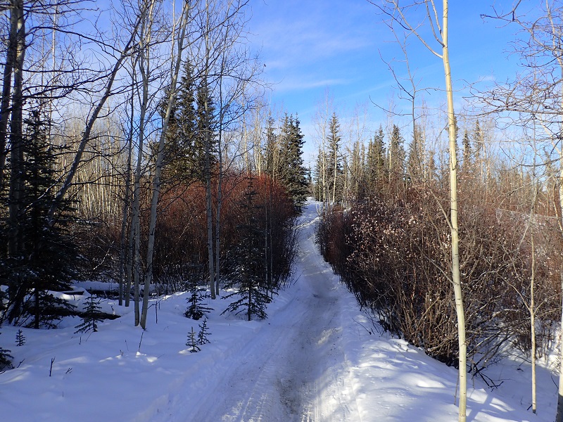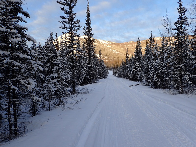 ■出発時(4時前)に温度計を見るとマイナス37度。すぐに先ほど来た選手を抜かし快調に歩く。ときどきちらっと温度計を確認しているとわずかな区間だがマイナス40度まで下がった。ここからは川を離れて尾根を進んでいるような感じになりアップダウンを繰り返す。トレイルの脇でビビーサックで仮眠している選手を何人か見かけた。しばらくするとまた眠くなってしまう。凍らせてしまったシューズとソックスもまた凍るのが目に見えているので、停滞して眠れるなら少し寝て、焚き火をしてソックスを乾かしていい状態を作ってから出発しようと思う。この停滞で目標にしていたカーマックスを4日というのは無理になり関門ぎりぎり(4日と12時間)を目指すことになるだろう。